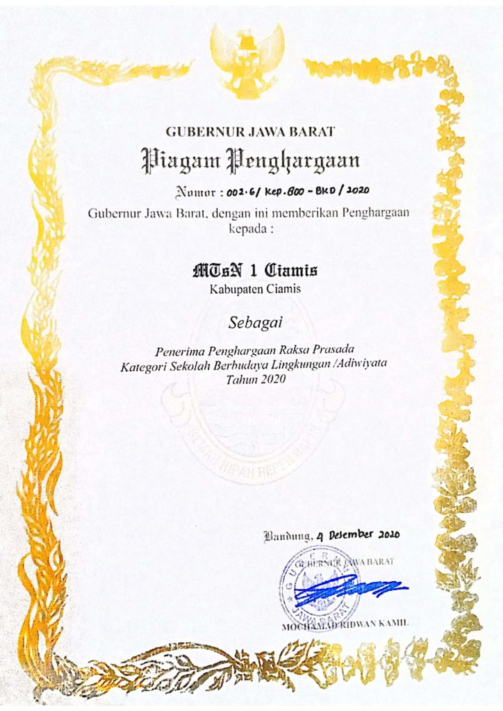 MI Andalan Penerima Penghargaan Raksa Prasada Ketegori Sekolah Berbudaya Lingkungan/Adiwiyata Tahun 2020 MTsN 1 Ciamis Penerima Penghargaan Raksa Prasada Ketegori Sekolah Berbudaya Lingkungan/Adiwiyata Tahun 2020 SDN 4 Kertasari Penerima Penghargaan Raksa Prasada Ketegori Sekolah Berbudaya Lingkungan/Adiwiyata Tahun 2020 MTsN 11 Ciamis Penerima Penghargaan Raksa Prasada Ketegori Sekolah Berbudaya Lingkungan/Adiwiyata Tahun 2020